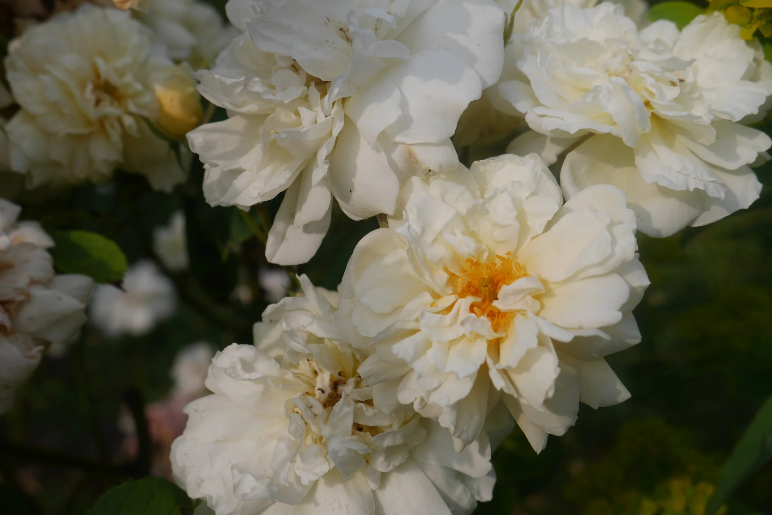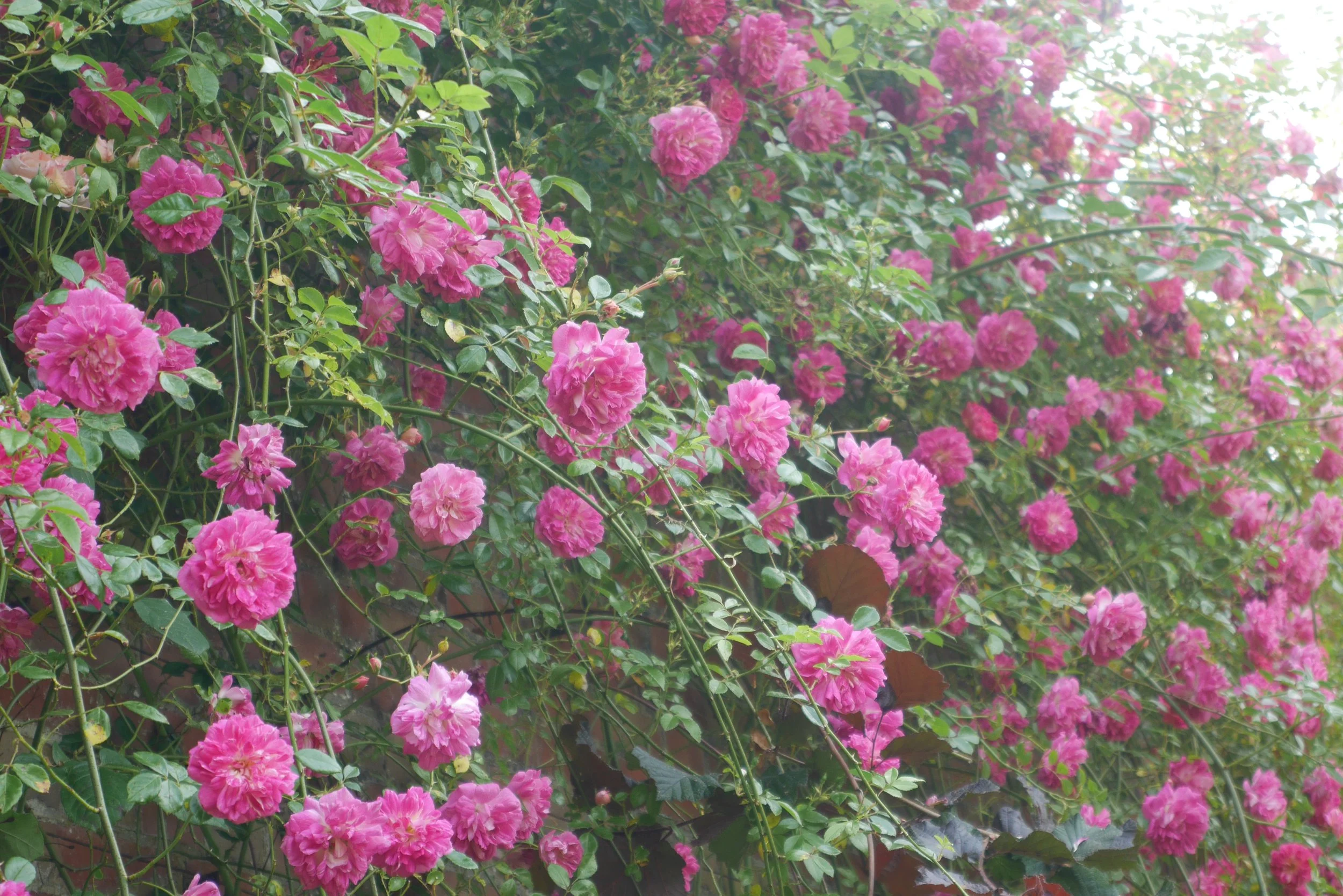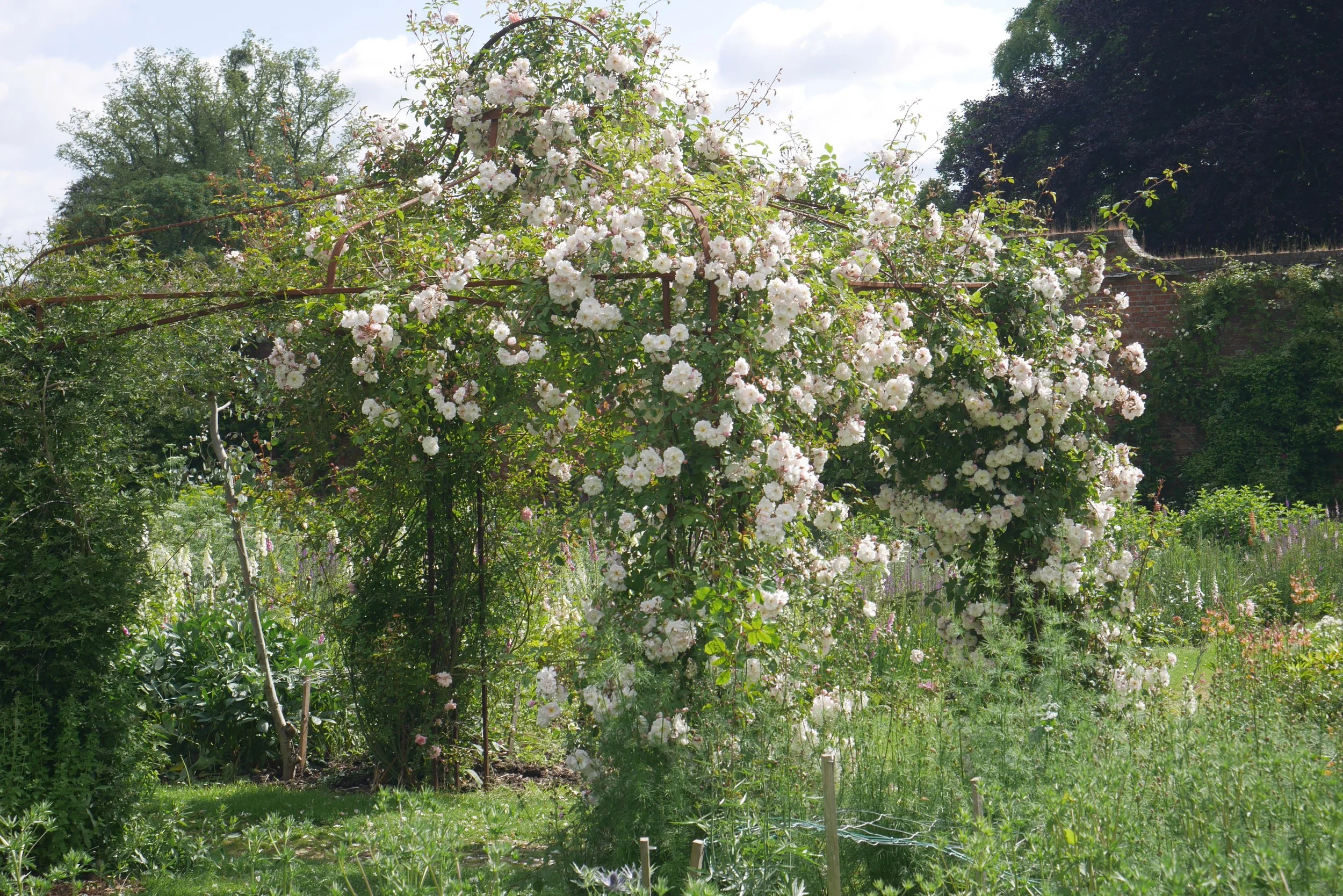 We specialise in roses, in particular the glorious fat fragrant old roses of the nineteenth century and earlier, and great spilling boughs of traditional rambling roses, which tumble in swathes over our weathered brick walls.